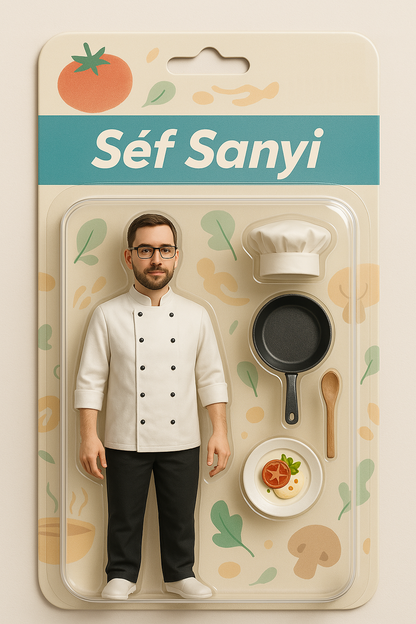 The figure is completely unique, made based on your photo, and then carefully hand-painted in our Budapest workshop.